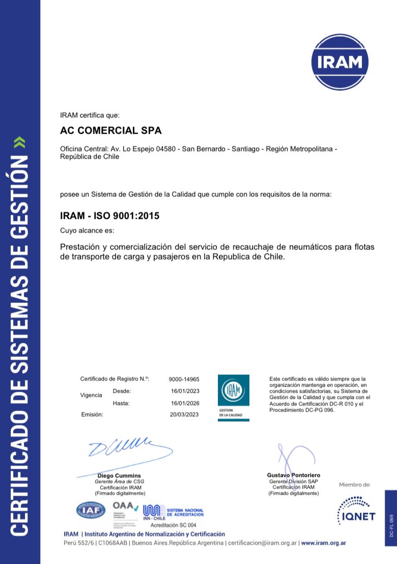 En AC Comercial, somos expertos en recauchaje de neumáticos y ofrecemos el servicio de Técnico en terreno. Creemos en elegir opciones sostenibles que no solo benefician tu billetera, sino también al medio ambiente. Optar por neumáticos recauchados es una elección inteligente que contribuye a la conservación de recursos naturales y reduce los desechos. Únete a nosotros en esta misión por un futuro más verde. Contáctanos para obtener más información sobre nuestros servicios y certificaciones. ¡AC Comercial, tu aliado confiable para el recauchaje de neumáticos y asesoría en rendimiento!